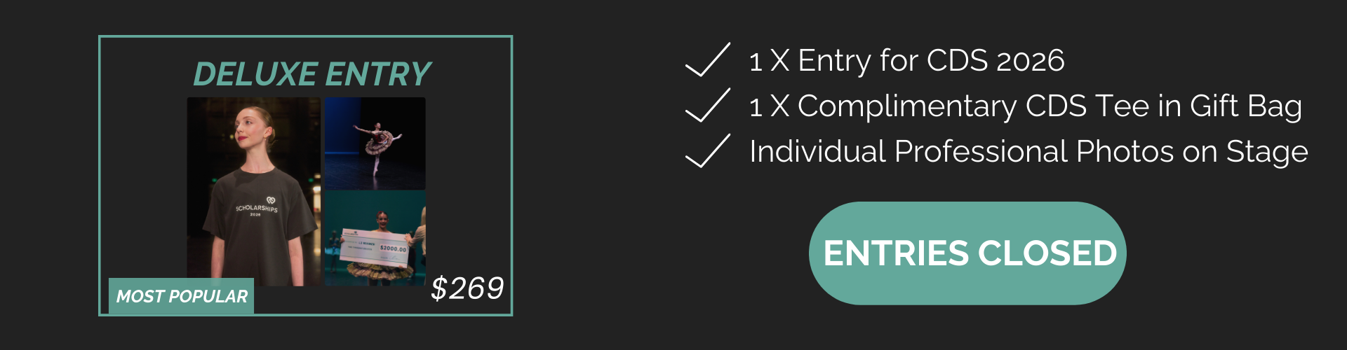 "Setting a new standard for ballet competitions. Supportive and encouraging. And while it's an inclusive environment, the talent of dancers is incredible. CDS is for all levels of experience."