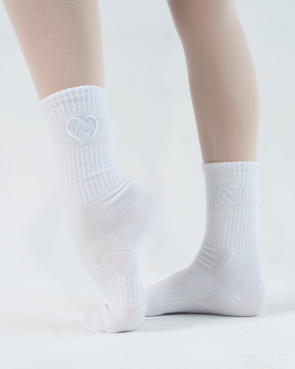 White Crew Socks w/ White Heart logo
